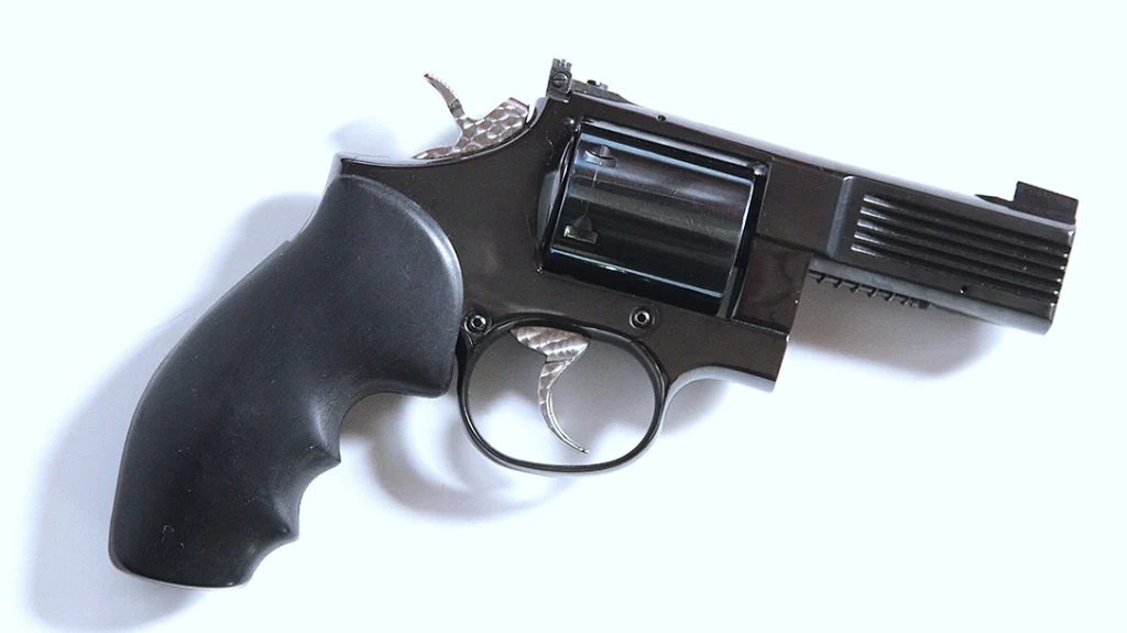 The gun I had was only the test piece, but Phillips and Rodgers was nearing completion of its own revolver with some improvements such as a spring-loaded firing pin, round butt and a great double action! With several people discussing what to call the gun, someone suggested “Medusa” (after the Greek maiden who could ward off enemies with her hair of many snakes), but the P&R Medusa had an appearance all its own without snakes. It had a relatively heavy match-grade barrel, adjustable sights, a smooth, non-fluted cylinder and a visible spring around the ejector rod that worked the six ejectors. The barrel was offered in 2.5-, 3-, 4-, 5- and 6-inch lengths with one 8-inch presentation Medusa made.