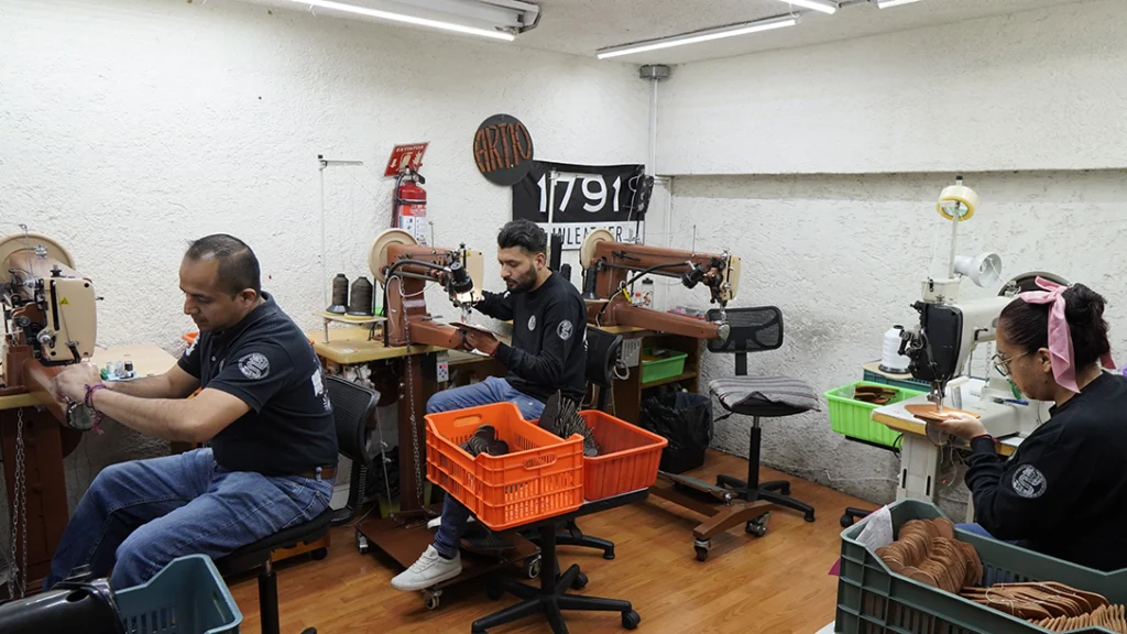 In a corner of Mexico City away from the chaotic highway traffic and the hustle and bustle of metropolitan life there is a quiet barrio of narrow streets, small apartments and tiendas. One of the neighborhood’s largest employers sits behind a non-descript steel security door. Invisible to the rest of the world until a watchman rolls it open revealing a hornet’s nest of activity. The rhythmic tapping of industrial sewing machines, the heavy thumping of hydraulic clicker machines and the distinctive smell of leather welcomed me to 1791 Gunleather’s factory.